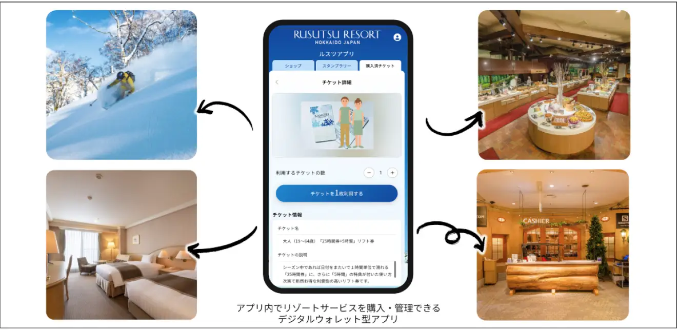 RUSUTSU WALLET(アプリ名:ルスツアプリ)は、デジタルチケットの販売機能だけにとどまりません。 アクティビティ、ショップ、体験、飲食などのリゾート内サービスを統合し、 リゾート全域をつなぐ“デジタルハブ”として発展していく構想を持っています。